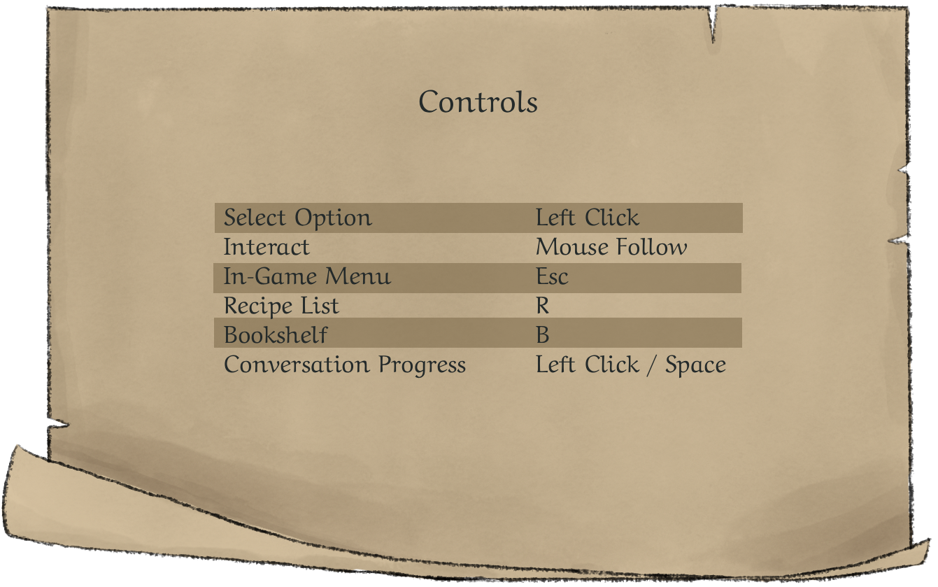 You have also brought your trusty cauldron and mortar with you from your school days. Grind ingredients to create their powdered versions. Boil a combination of ingredients to create a potion. Don't forget to stir!